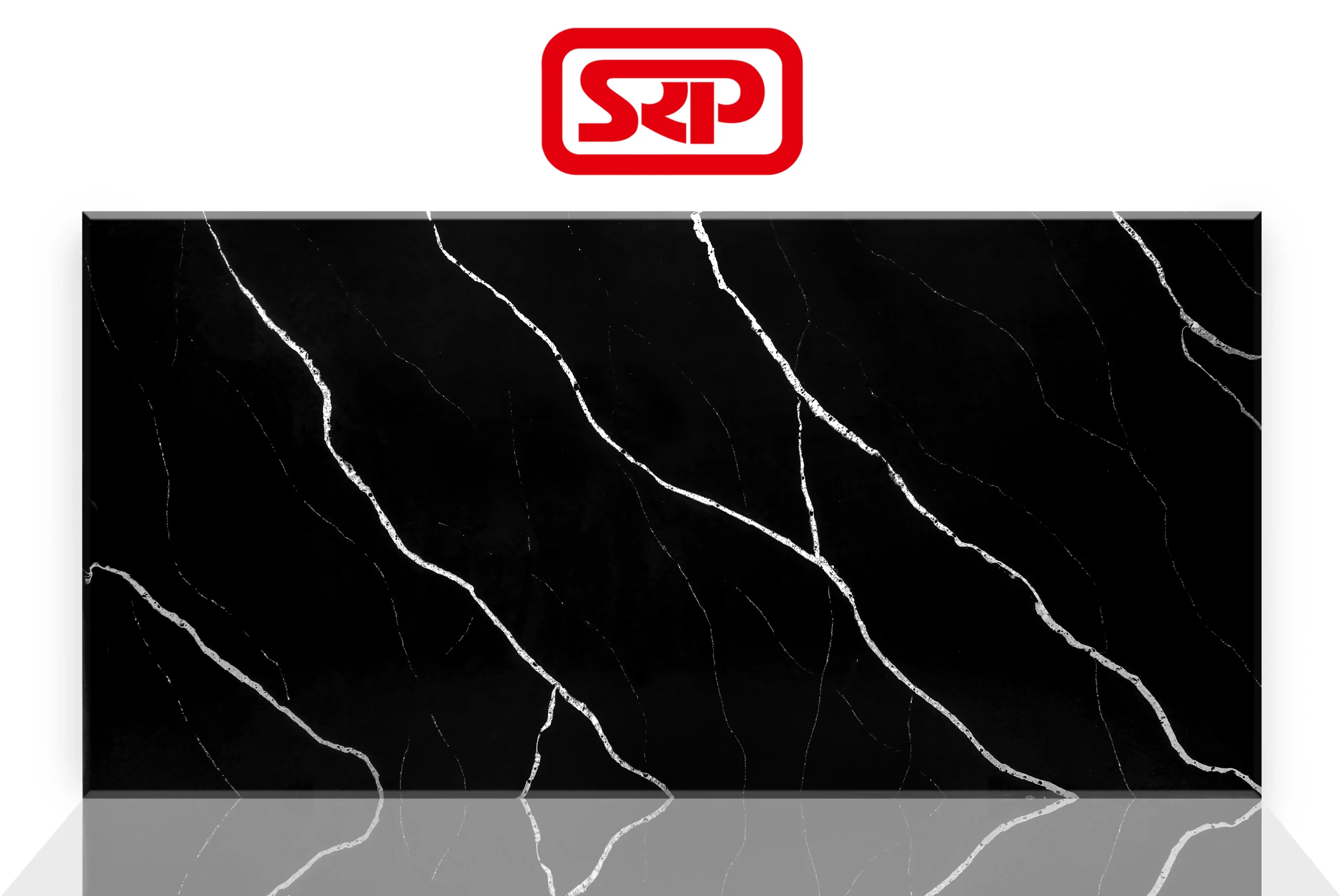 Nero Marquina Quartz is a premium engineered stone featuring a rich black base with bold white veining, inspired by classic Nero Marquina marble. Durable, stain-resistant, and low maintenance, it is ideal for countertops, wall cladding, and luxurious modern interiors.